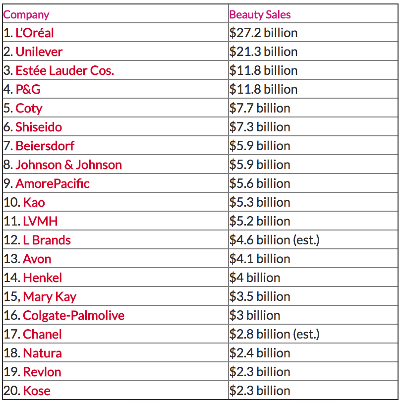Beauty Packaging Magazine: Top 20 Global Beauty Companies 2017