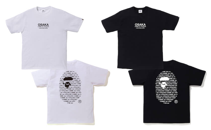 「ア・ベイシング・エイプ(A BATHING APE)®」と「コム デ ギャルソン(Comme des Garçons)」が、初のコラボレーションアイテムを6月20日に「BAPE STORE®︎ コム デ ギャルソン大阪」で限定発売する。