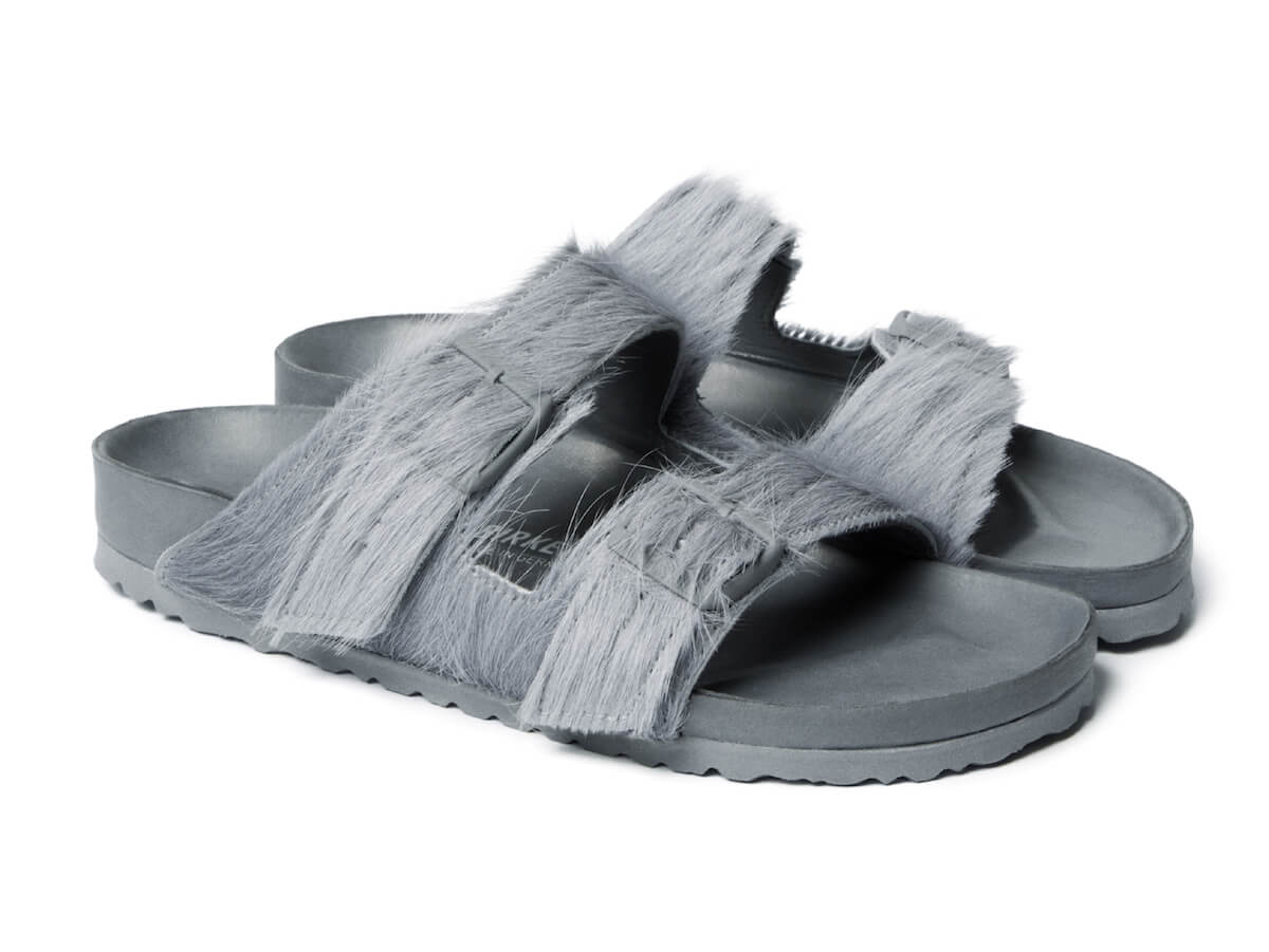 「ビルケンシュトック(BIRKENSTOCK)」と「リック・オウエンス(RICK OWENS)」がコラボレーションし、全13型のサンダルを発表した。「ビルケンシュトック」の定番である「アリゾナ」「マドリッド」「ボストン」に、アーミーフェルト、スエード、フルグレインレザー、ロングヘアーカウの4つの異なる素材が施された。サンダル以外に3種類の靴下も登場し、4月17日から「ビルケンシュトック」の公式オンラインストアと「リック・オウエンス」東京で販売が開始された。