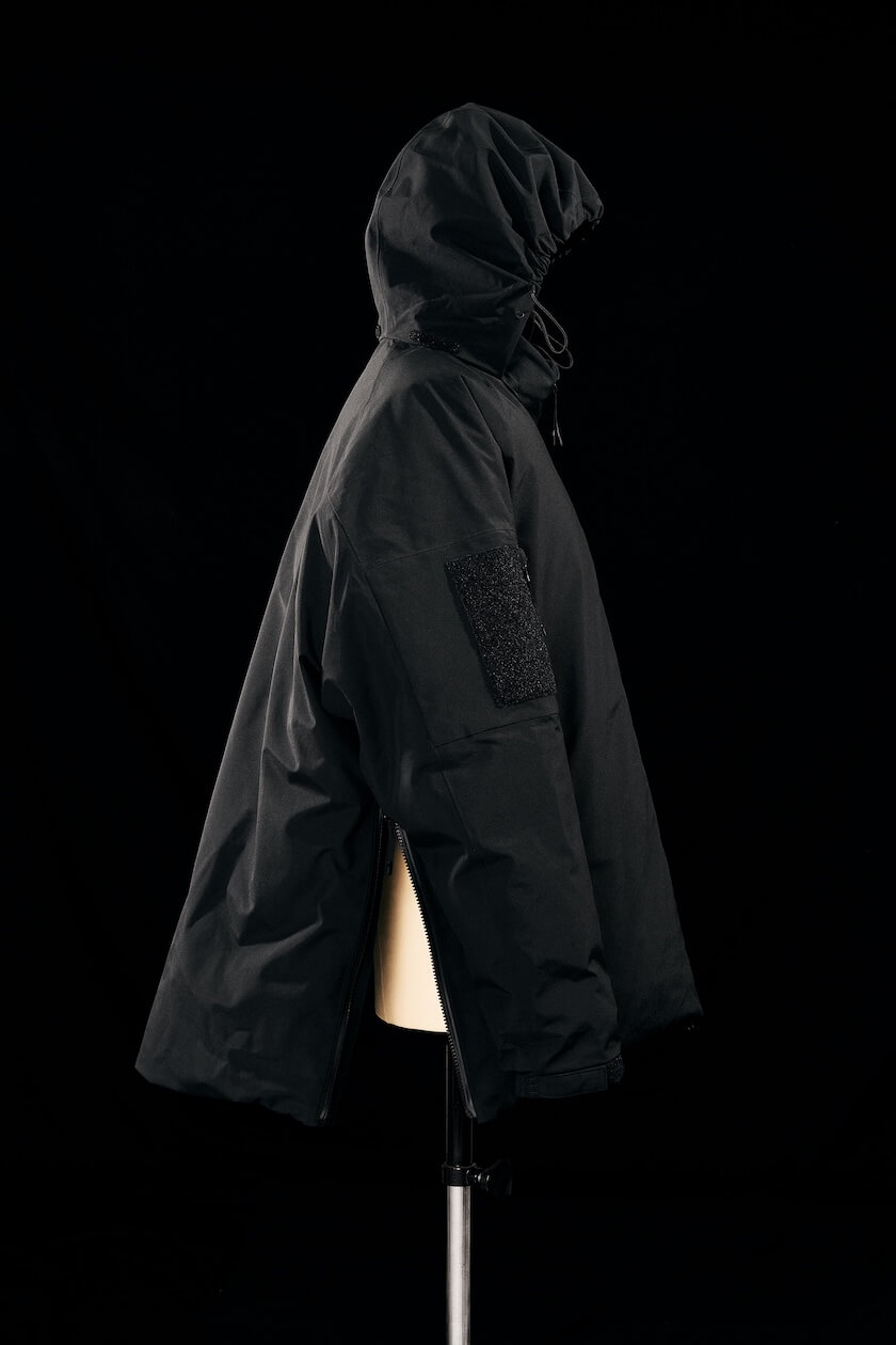 今回のコレクションは、「コム デ ギャルソン・オム」の「普遍と実験」を往還するデザイン哲学と、「ゴールドウイン」が75年にわたり培ってきたテクノロジーを掛け合わせたもの。ベーシックを超えた新しいスタイルとして、機能性と美意識を両立させたアイテムに仕上がっている。