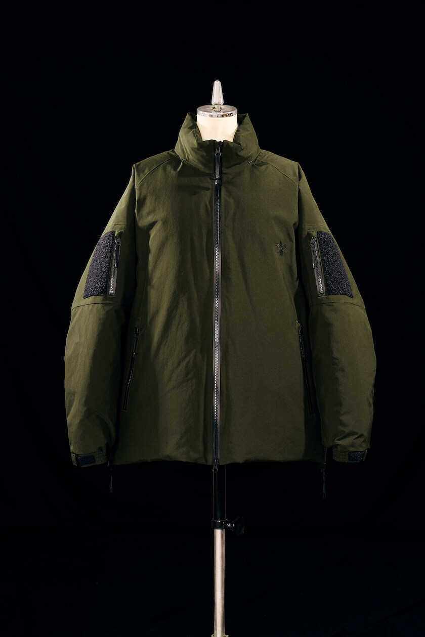 主役となる「GORE-TEX Three-Dimensional Down Jacket」(24万2000円)は、防水性、防風性、透湿性を高次元で兼ね備えたGORE-TEXファブリクスを採用したダウンジャケット。雨や雪、風にも強く、アクティブなシーンでも快適さをキープする。中綿には650フィルパワーのダウンを封入し、「ゴールドウイン」独自の「3D Box Baffle」構造により高い保温性と軽さを両立。裏地のPERTEX QUANTUM素材が、しなやかな肌触りとスムーズな着脱を実現している。カラーはブラックとカーキの2色展開。
