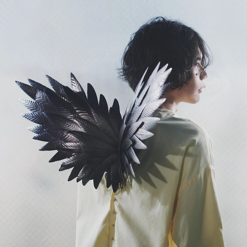 米津玄師の創造空間に潜入した同キャンペーンには、彼の感性に多大な影響を与えた漫画や小説、詩やアニメ作品が登場する。うつろげな空間の中で、米津玄師は新しいパズルトートとともにたたずみ、スタッズのシャツからメタルの天使の翼を広げ、やわらかなラムスキンで作られたツイステッドコートや強調されたラウンドトゥのレースアップダービーシューズを着用している。いずれのアイテムにも、「ロエベ」を象徴するディテールが感じられる。