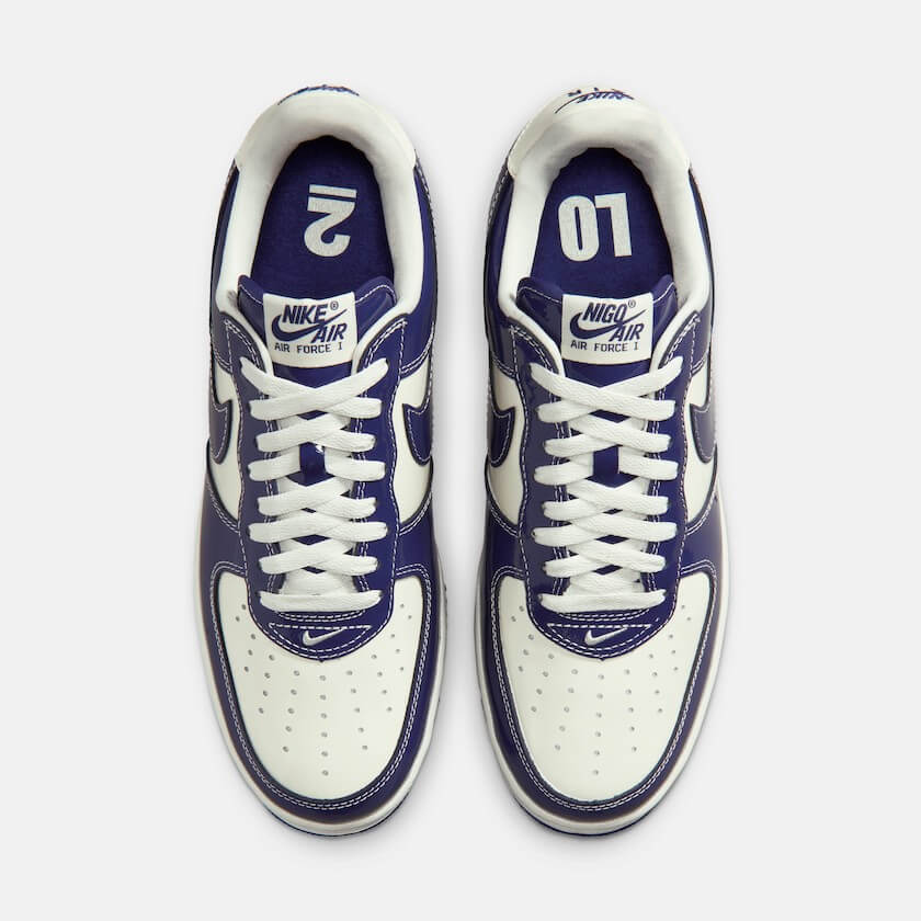 今回発表した「エア フォース 1」は、セイルとロイヤルブルーのカラーリングは、両者が運営したショップ「ノーウェア(NOWHERE)」のサインカラーを踏襲し、当時のカルチャーを現代に再解釈した。アッパーにはパテントレザーを採用し、「LO2」や「NIGO AIR」といったブランディングを配置。2001年モデルをベースに、細身のトゥボックスやスポーティなフィット感を再現しつつ、より洗練されたヴィンテージルックへと昇華させている。NIGOのキャリア初期を象徴する鮮やかな素材使いと、日本のカウンターカルチャーへのリスペクトが随所に表現された。