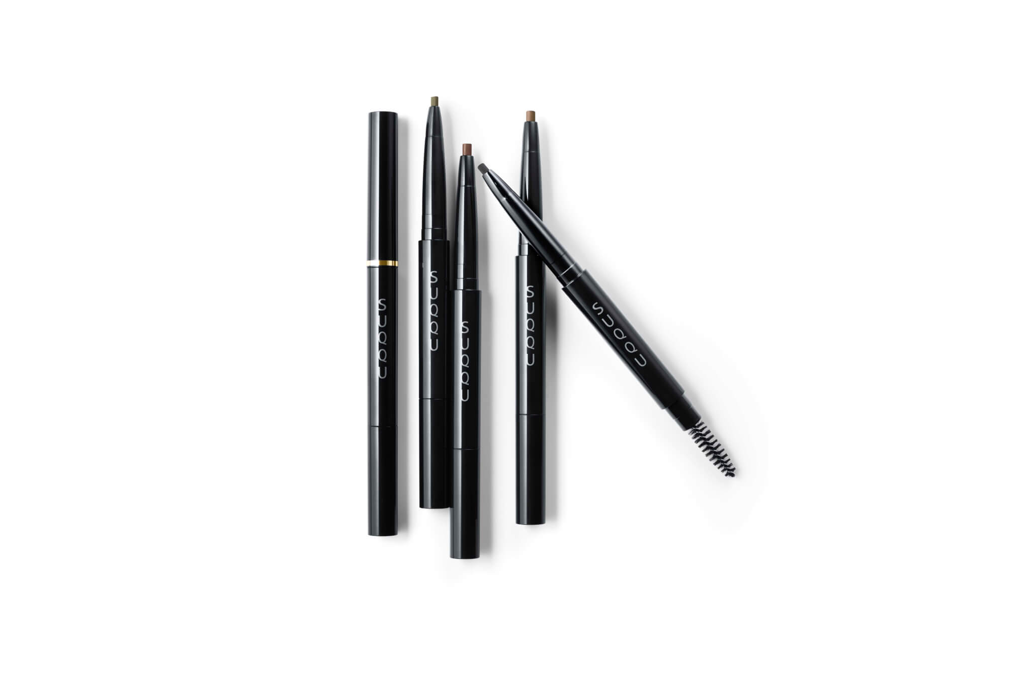 ペンシルタイプの「SUQQU ソリッド アイブロウ ペンシル」(各2,000円+税)は、パーツごとに描きやすいオーバル芯を採用しており、繊細な眉も表現することができる。密着ワックスを配合しているため色素を眉に定着させ、また、オイルイン処方で汗や水にも強くにじみにくい。カラーは、凛とした印象のカーキ、女性らしいブラウン、軽やかで洗練されたキャメル、都会的で抜け感のあるグレーの4色展開になっている。