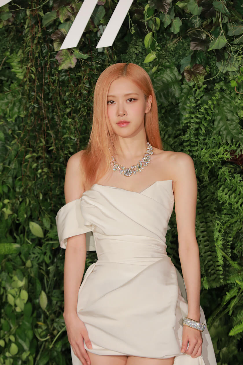 白いドレスを纏い登場したロゼは、合計63.43カラットのダイヤモンドをあしらったジャン・ジュランバージェのネックレス(参考価格328,570,000円)で会場を魅了。